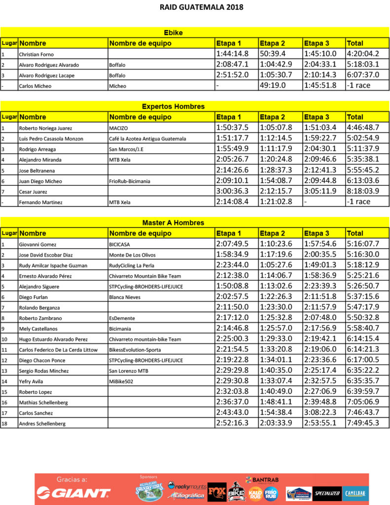 RAID es una competencia individual (no por equipos), en donde se sumarán los tiempos de las tres etapas para obtener la clasificación general al final del evento.